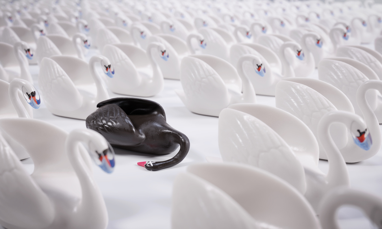 A black swan is defined as an unforeseen/unpredictable event has a significant impact on the organization (or industry, or economy). The term refers to how in Europe it was understood that all swans, as in the bird, are white. There was no concept of a black swan. Then some explorer overseas finds a black swan and changes the paradigm of what swans are.